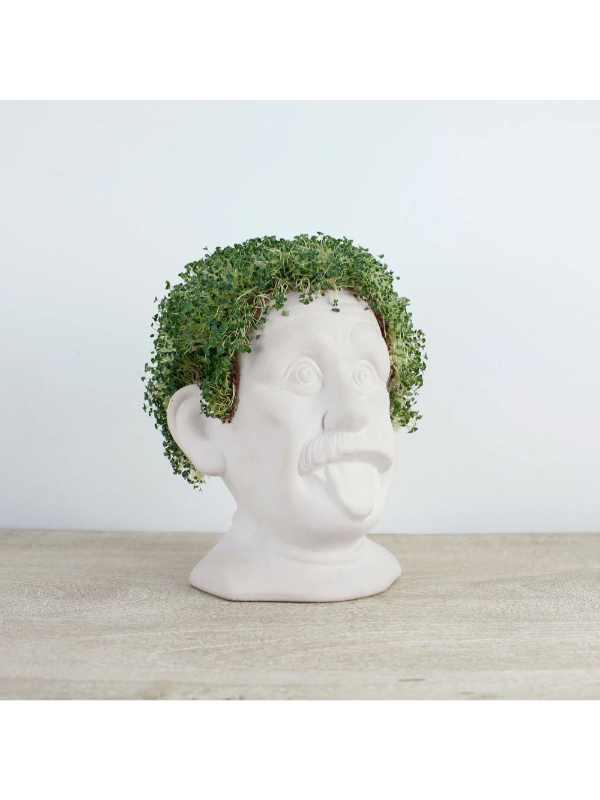 Ova unikatna figura je prava zabava za sve ljubitelje biljaka i kreativnog dizajna. Posadite čiju u posebnu posudu na glavi figure, i gledajte kako vam „kosa” raste i menja oblik! Tako dobijate živu, zelenu frizuru koja se može stilizovati i oblikovati po želji.